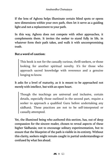 The trilogy barely touches the scriptural foundations of Aghora. There is no structured discussion of its history, no effort to present it as a legitimate spiritual path. Instead, it reads like a personal memoir, entertaining, yes, but misleading. Worse, it subtly implants a dangerous idea: Aghora is not for you. It is not a path.