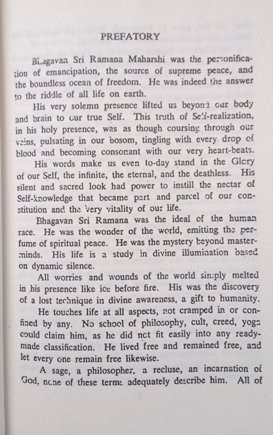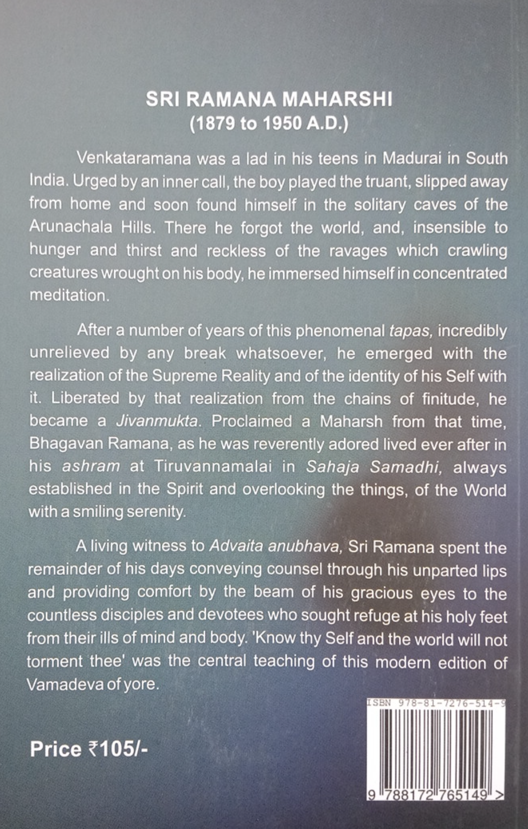 The book contains the teachings and sayings of Sri Ramana Maharshi in his own words. His gospel is a practical expression of self which is reality, intelligence and bliss. It cannot be delimited by determination and differentiations.