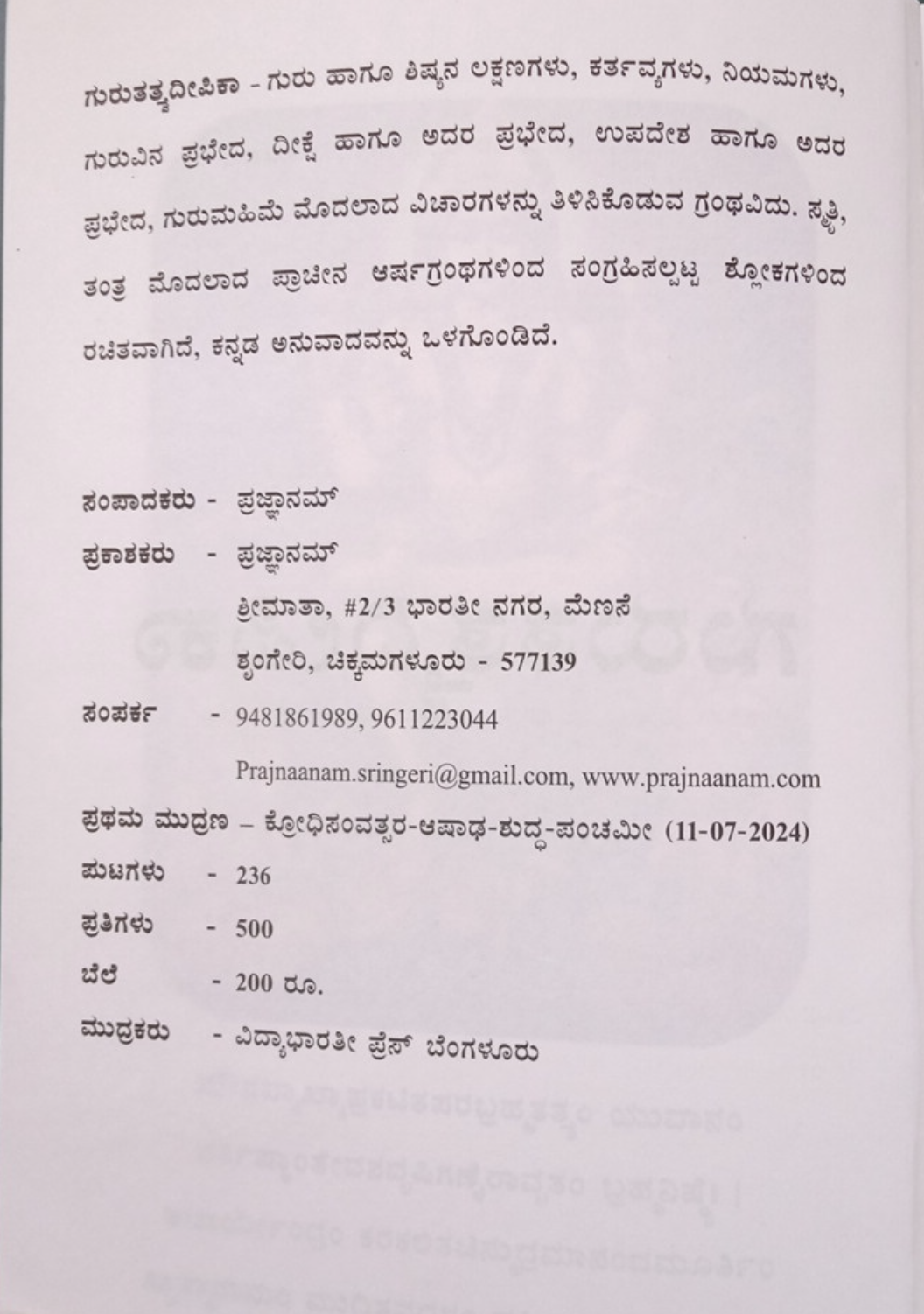 ನಿಮ್ಮ ಆರ್ಡರ್ ಮಾಡುವ ಮೊದಲು ದಯವಿಟ್ಟು ನಮಗೆ ಬರೆಯಿರಿ: info@sadha.org
