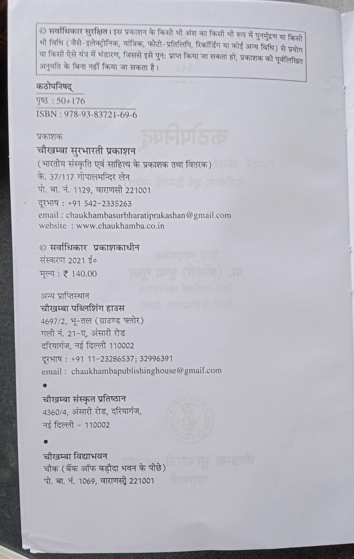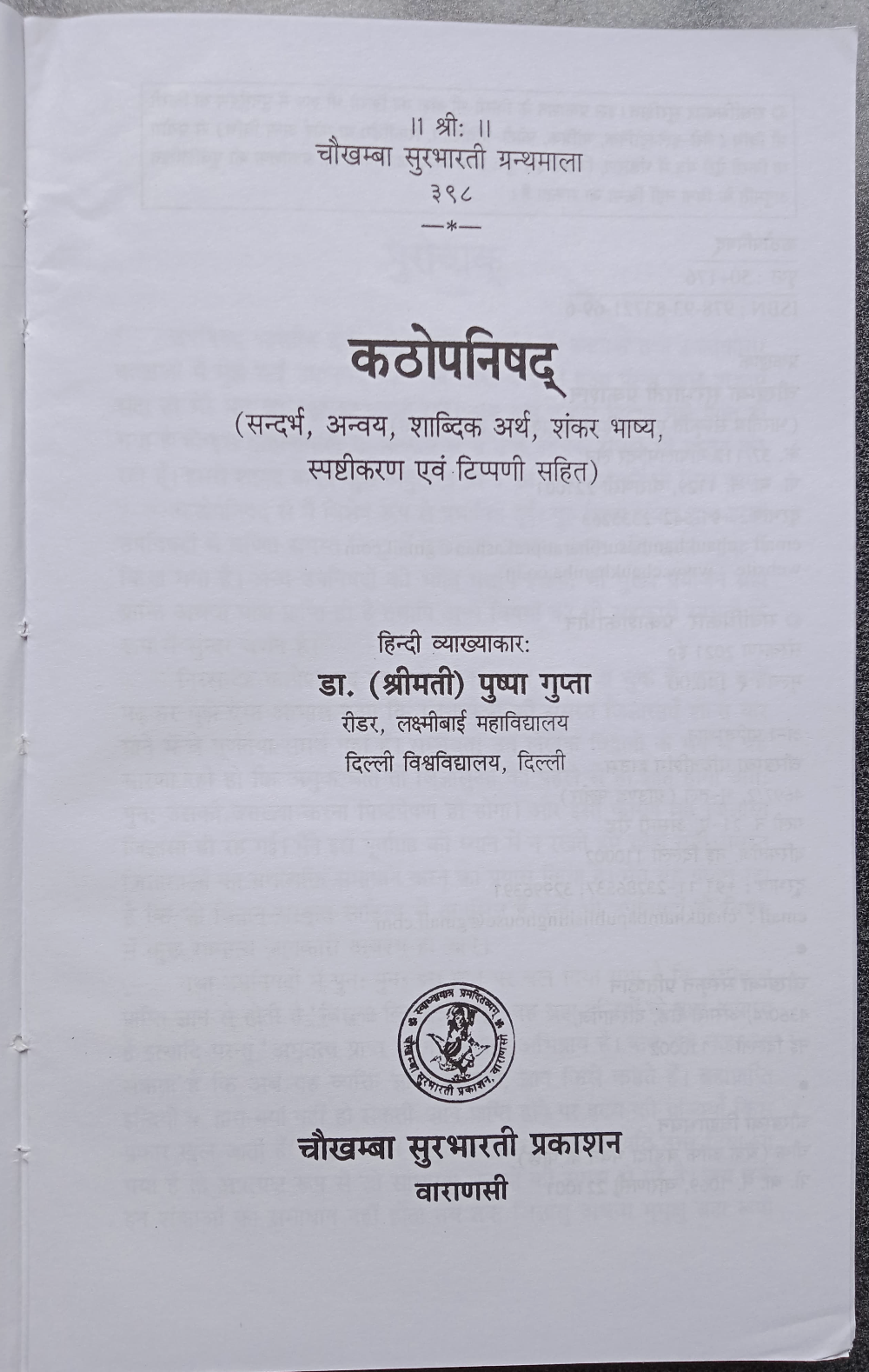 Kathopanishad with commentary by Adi Shankaracharya (कठोपनिषद्) (Sanskrit to Hindi)