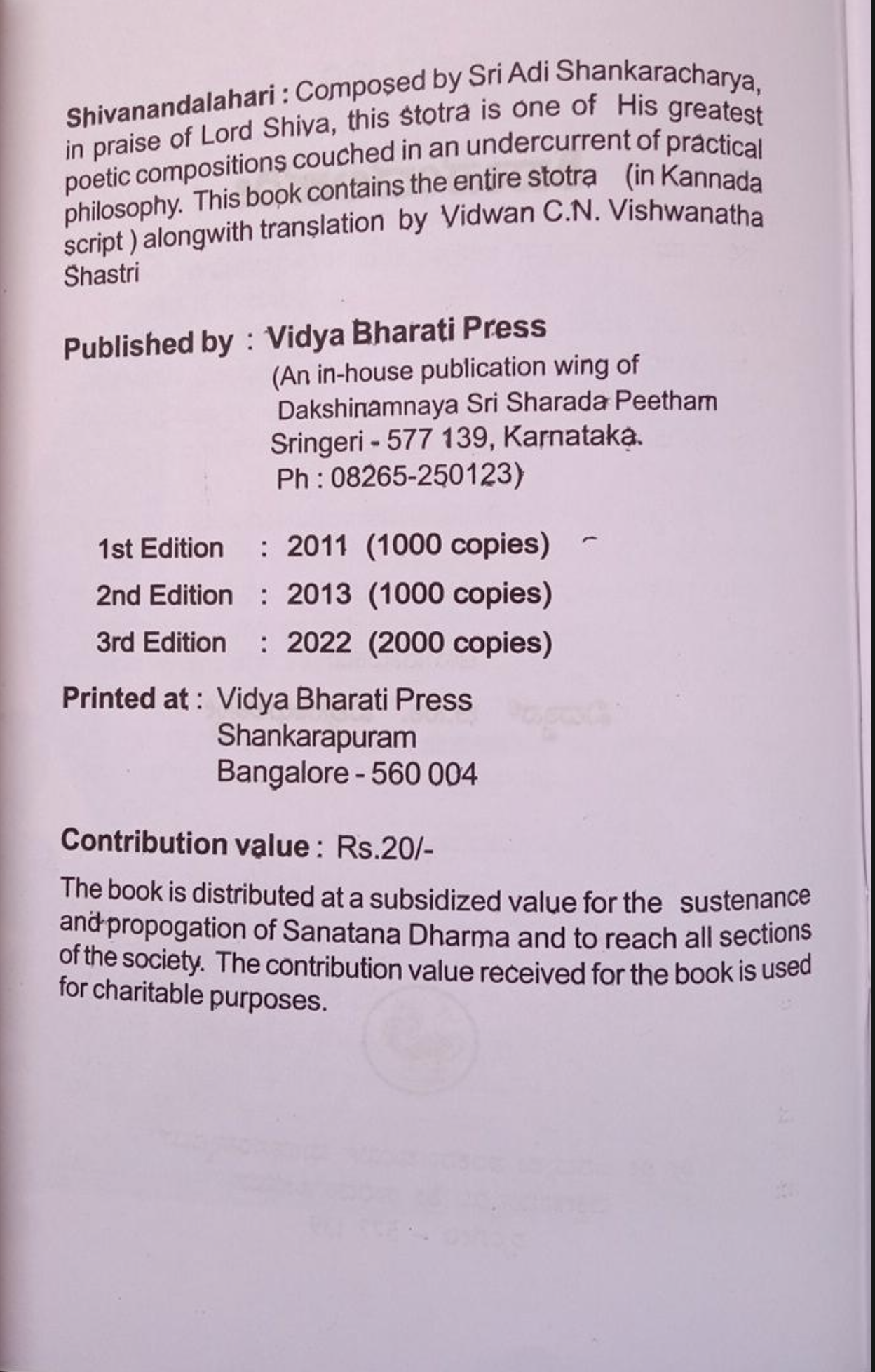 Recognizing the time constraints of modern readers, this edition offers Shivanandalahari in a concise format, facilitating convenient daily recitation and contemplation. The publishers aspire that devotees will attain spiritual enrichment through engaging with this melodious and profound composition.