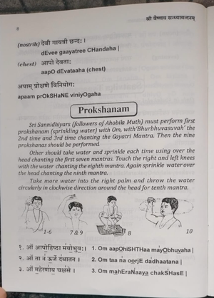 • This book provides a detailed and authentic step-by-step procedure for performing Sandhyavandhanam three times a day (morning, noon, and evening), following both the Vadakalai and Tenkalai traditions.
