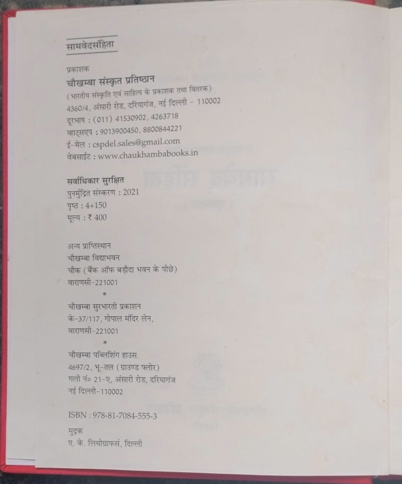 • The "Samaveda Samhita - Moola Mantra" is a pristine collection of the original Sanskrit mantras from the Samaveda, one of the four Vedas in Hindu tradition.