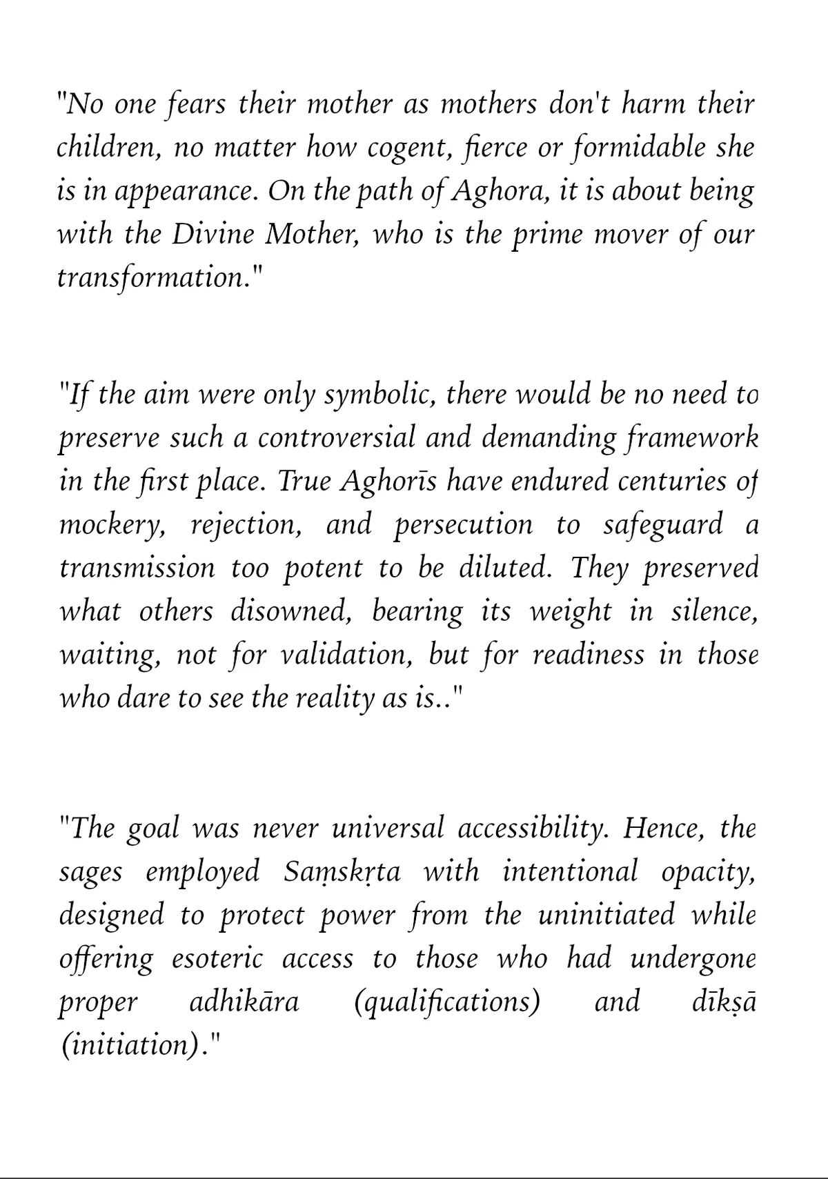 Aghora – A True Treatise is a gateway into the fire; a path rooted in the timeless wisdom of the Vedas and transformative power of Tantra. This work offers clarity where distortion has long reigned. It does not entertain the superficial; it reclaims the sacred.